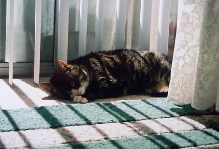 I love how memories like that are tied in my head by location. Another sleeping in story happened while I was living at that same apartment. This one involves my former cat, Kiki.